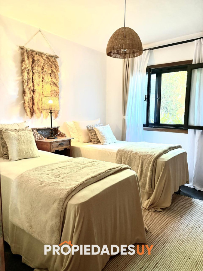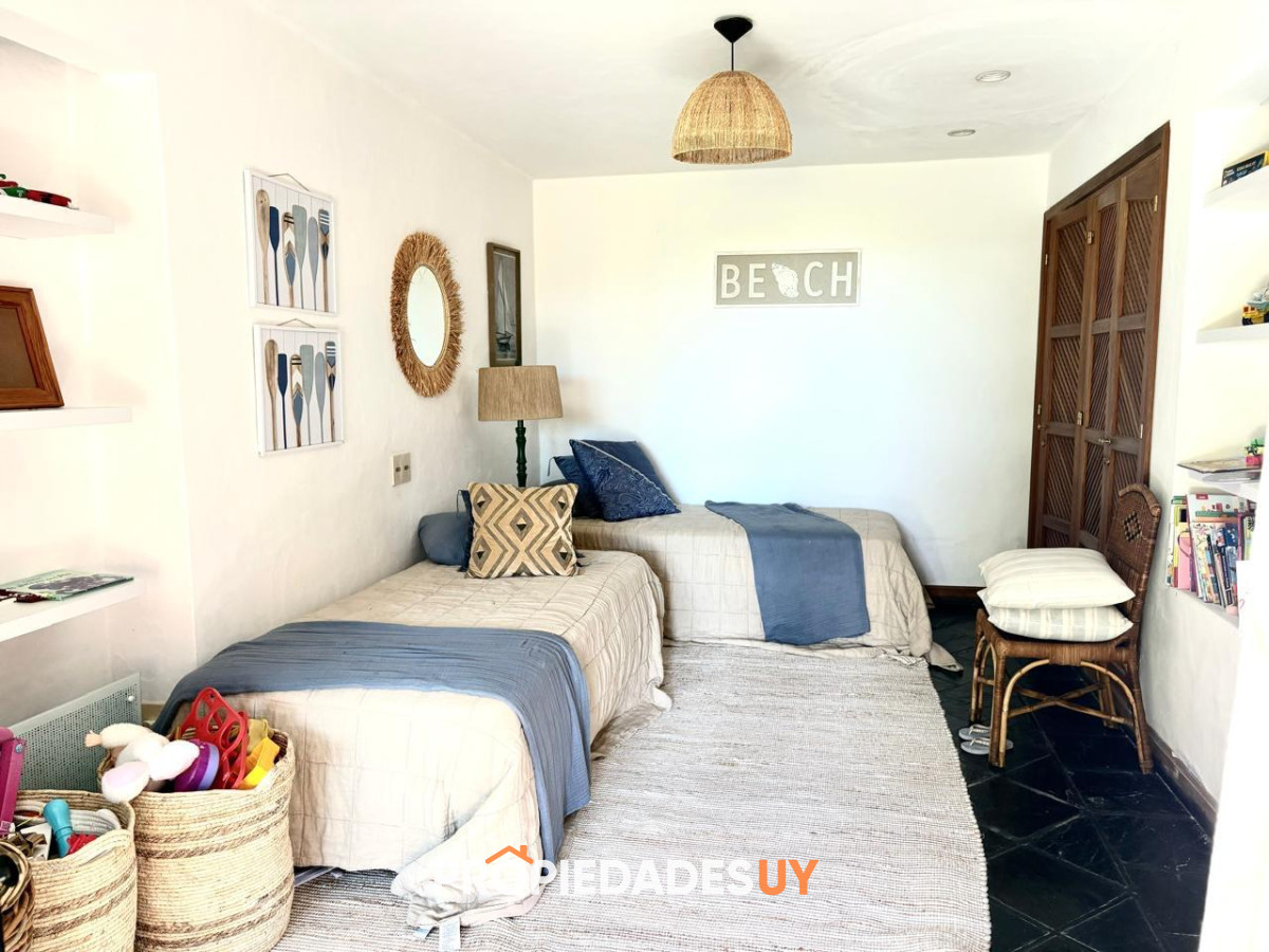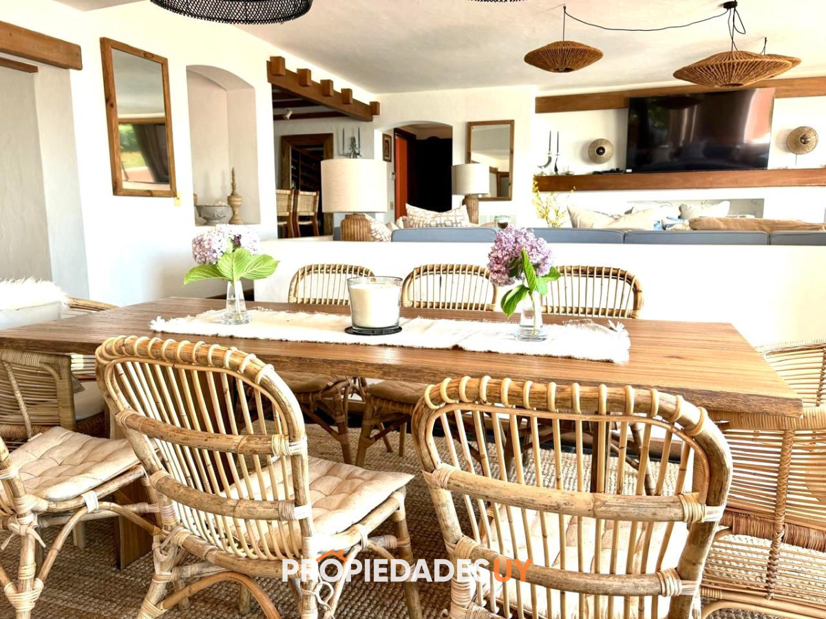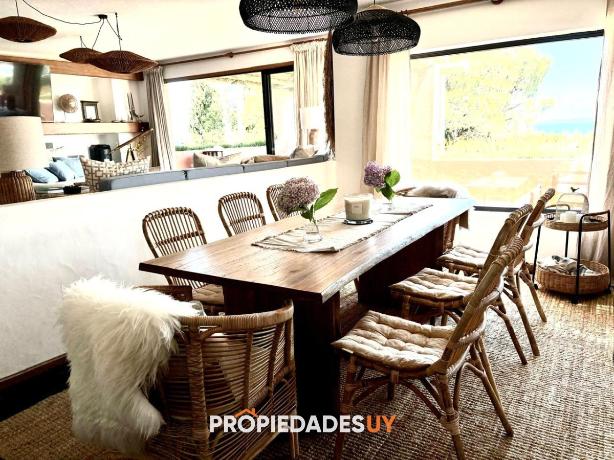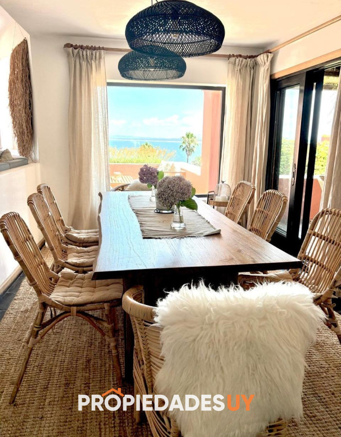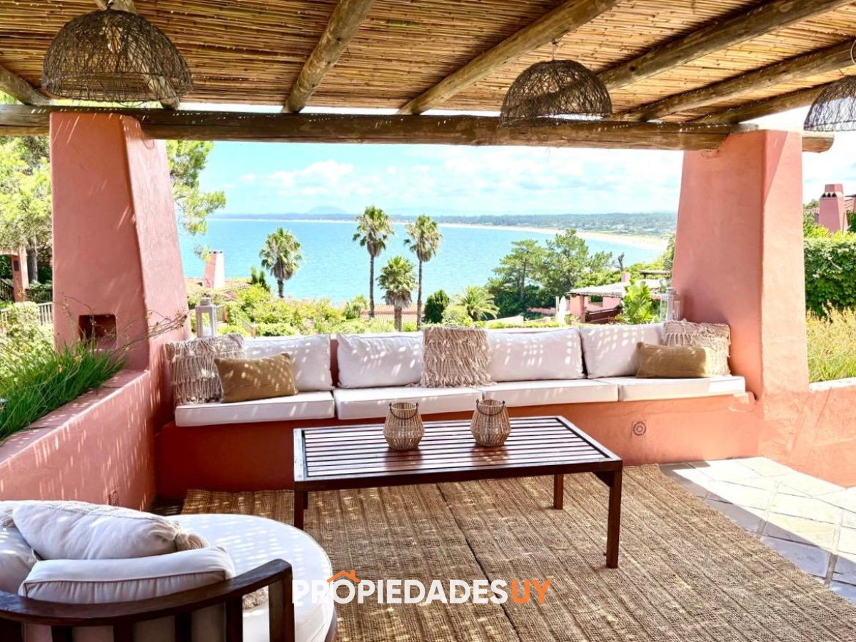 En alquiler de verano, en Punta Ballena, impresionante vista al mar, entorno único. Casa de 4 dormitorios y 3 baños, 1 en suite, con salidas a amplia terraza con jardín. En planta baja cuenta con amplio living y comedor, terraza doble con vista al mar, parrillero, cocina con comedor diario, toilette, lavadero, servicio y baño, y suite de huéspedes. El complejo cuenta con muy buenos servicios comunes (piscinas, gimnasio, sauna, bajada exclusiva al mar, etc.). Disponible del 25 de diciembre al 15 de enero de 2026. Consúltenos para el envío de mas información.