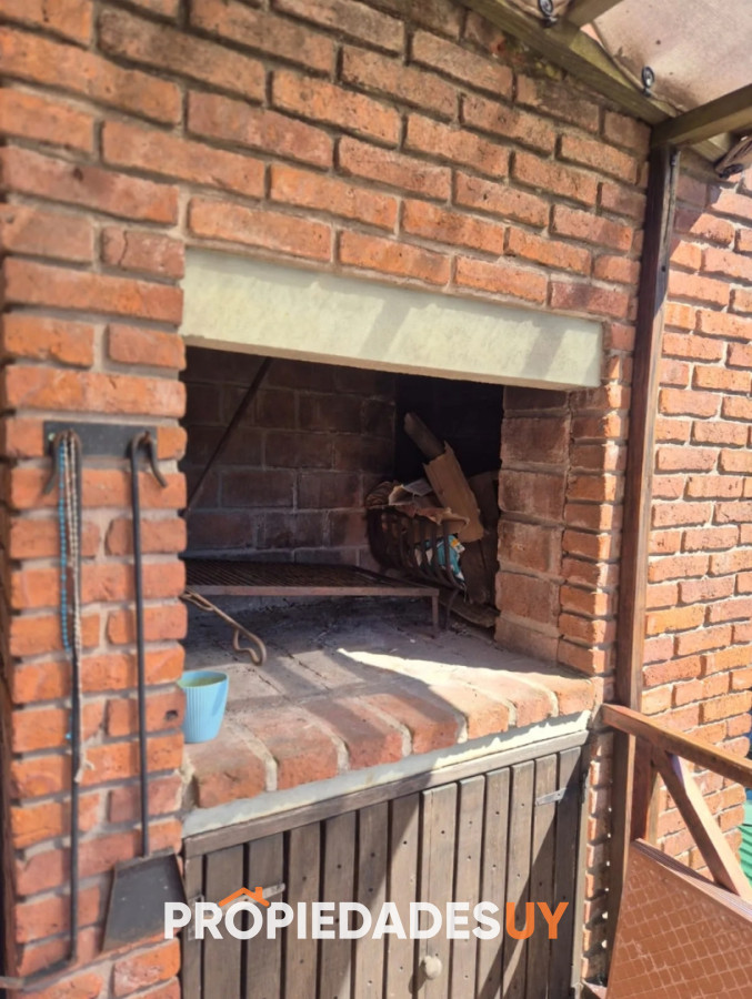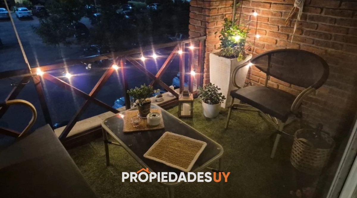 Terraza con parrillero y balcón al frente equipado.
