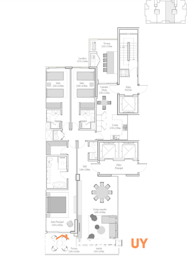 Unidad de 3 dormitorios en suite + toilette.