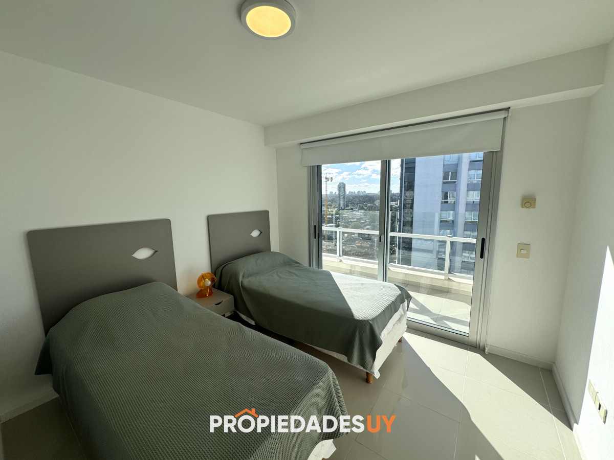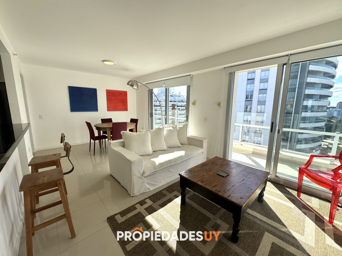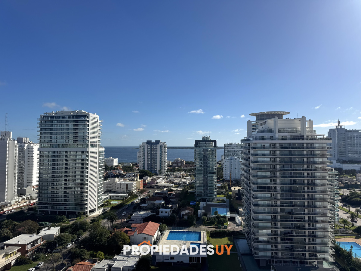 Estratégicamente ubicado a 150mts de Playa Brava y a 300mts de Playa Mansa. Cerca de todos los servicios y Hotel Enjoy, ideal para disfrutar todo el año!!! Cuenta con living comedor, amplio balcón terraza, cocina americana, 3 dormitorios (principal en suite), 2 baños, excelente orientación y vistas parciales a Playa Mansa y Brava. El edificio, de reconocida categoría, cuenta con recepción 24hs, piscina, sauna, gimnasio, saloes de usos múltiples con parrilleros, servicio de mucamas y más!! Oportunidad!!! Coordiná tu visita.