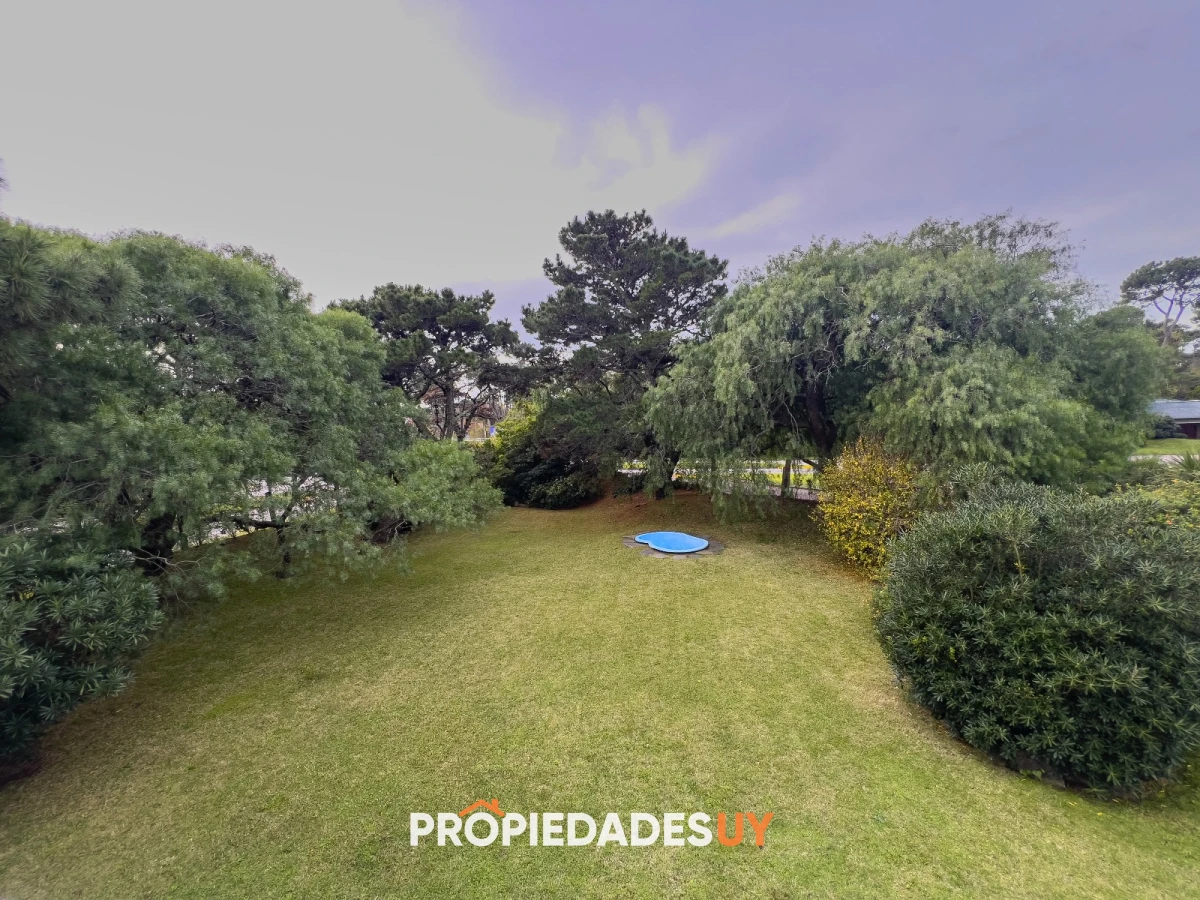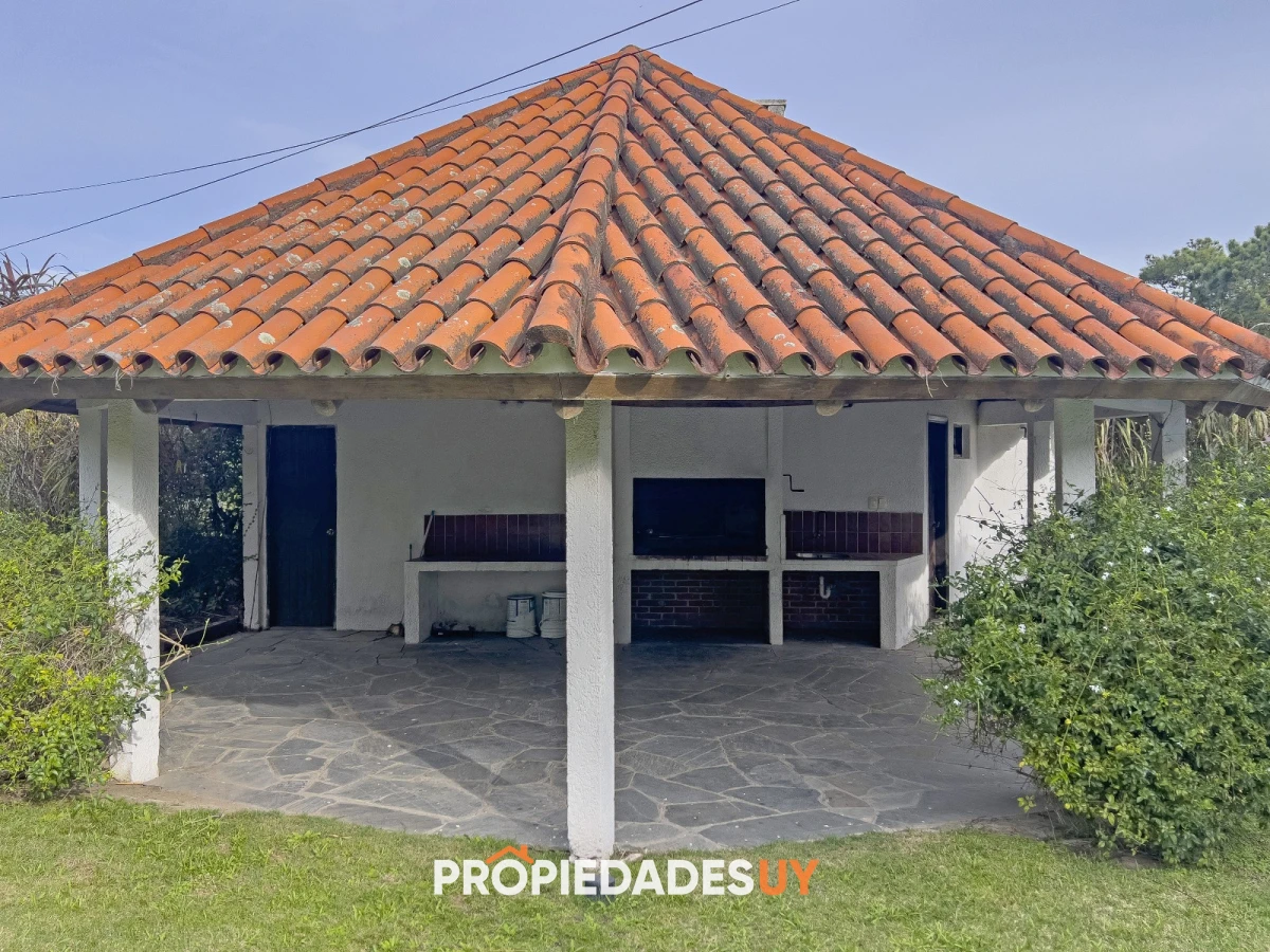 Parrillero techado, baño exterior, alarma, y una gran area verde con hermoso jardin y piscina para niños.
