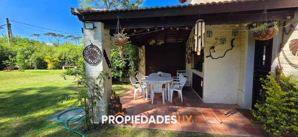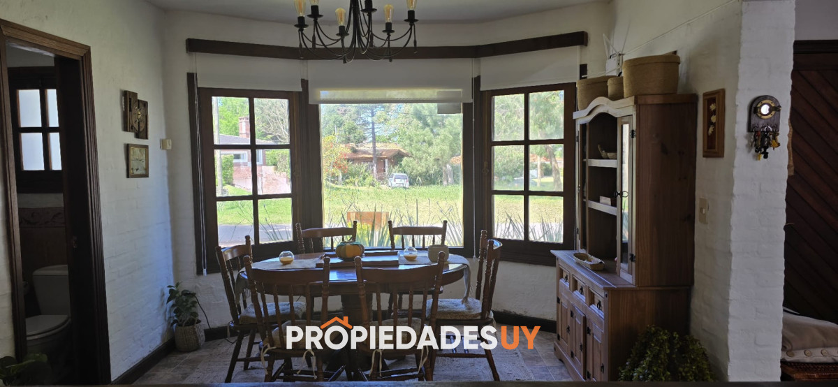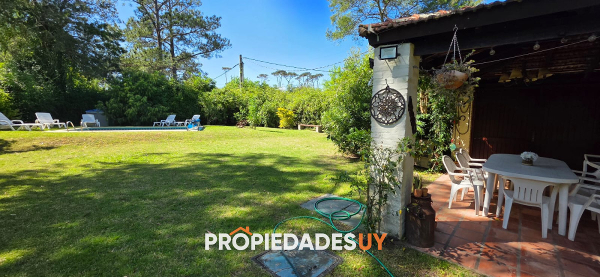 Encantador chalet a pocas cuadras del mar, con gran parque cercado rodeado de verde, piscina y parrillero techado. En planta baja living, comedor, toilette, y cocina integrada. Planta alta con 3 dormitorios y 2 baños (una suite).