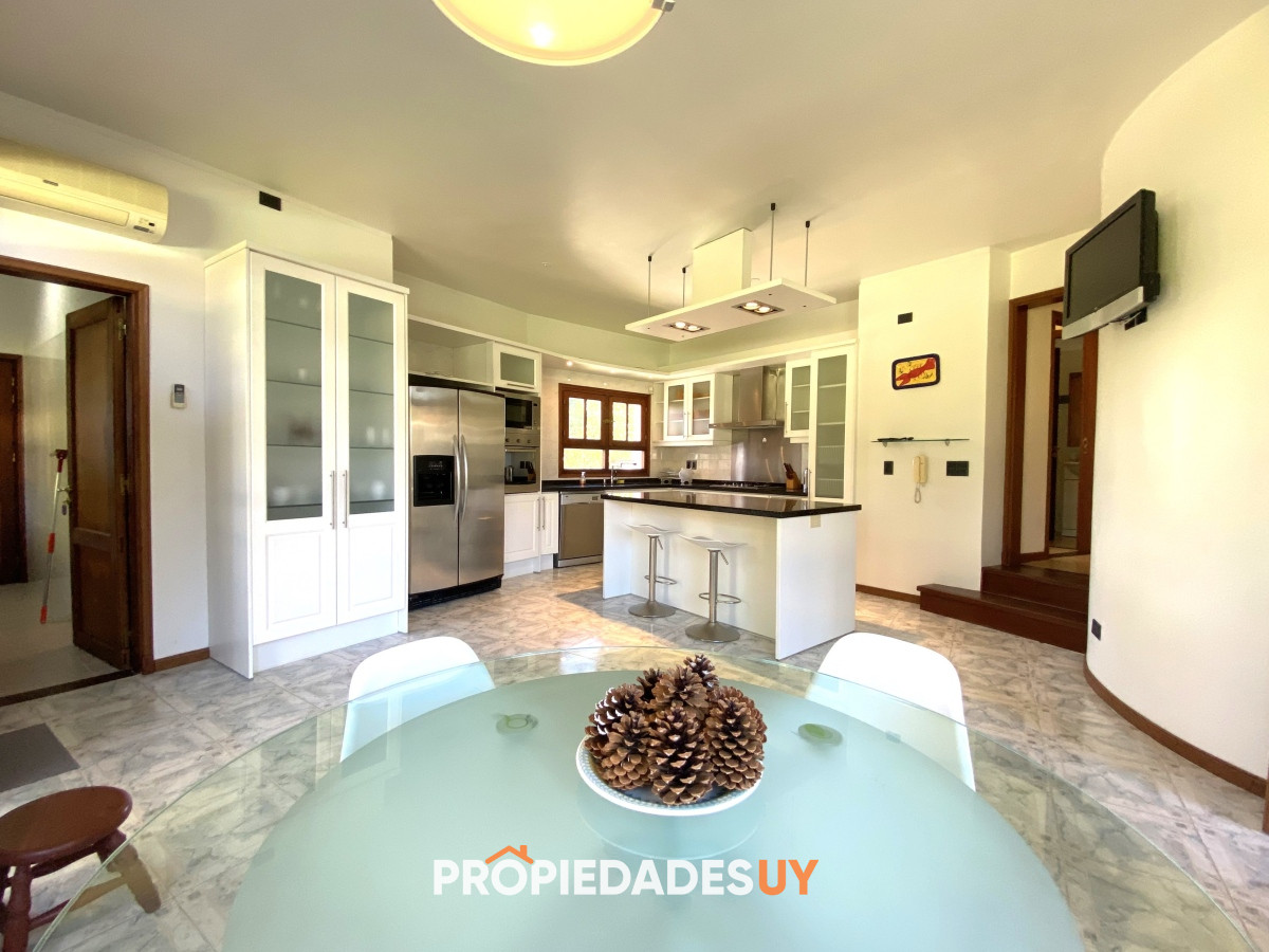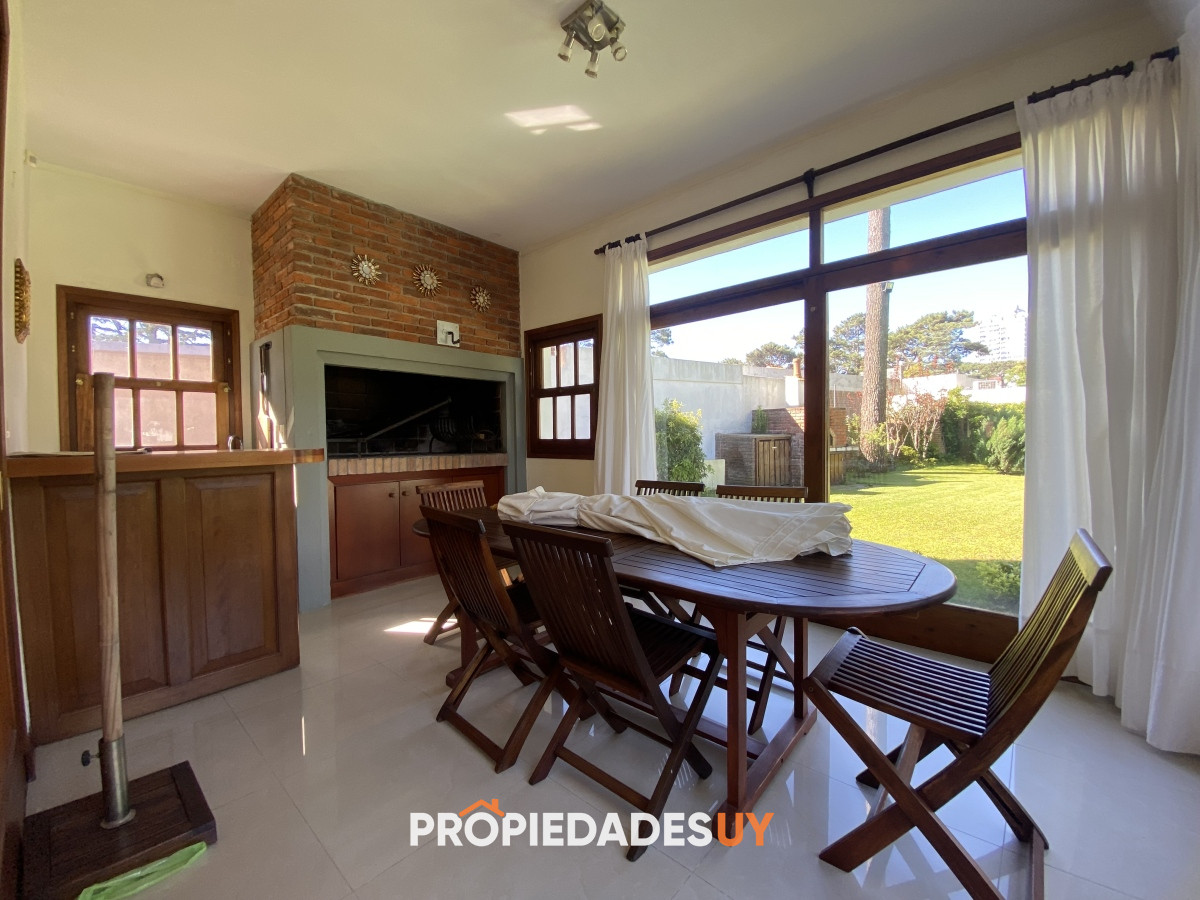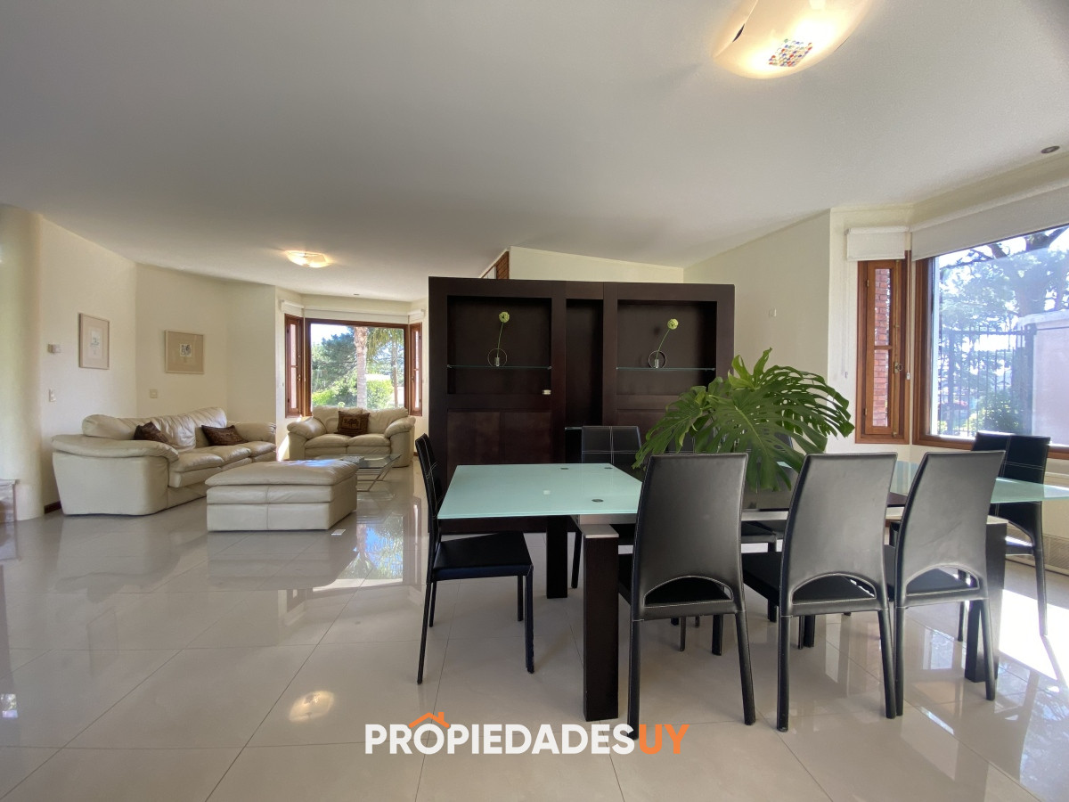 A pocas cuadras del mar se encuentra esta residencia de gran apariencia. Desarrollada en dos plantas + subsuelo (gge) y con una muy buena distribución, en una excelente ubicación en parada 15 de playa mansa. Amplio jardín cercado con piscina climatizada, garaje para 3 autos, aires acondicionados en todos los ambientes y losa radiante en toda la casa. Su espaciosos ambientes cuentan con una barbacoa integrada , 5 dormitorios (3 en suite), 4 baños, room office y dependenia de servicio con baño. A su vez cuenta con amplios espacios de circulación, 2 living con estufas a leña y gran cocina definida con doble circulación.