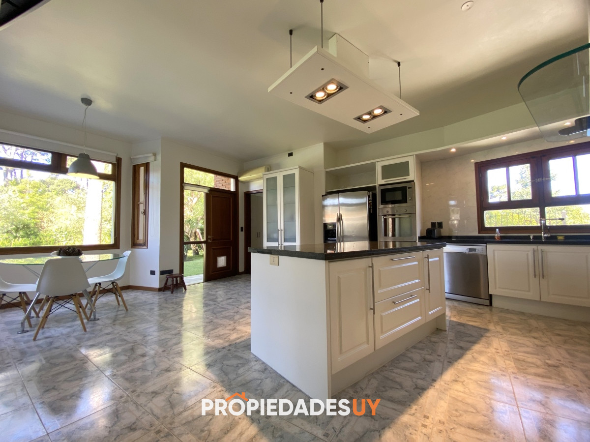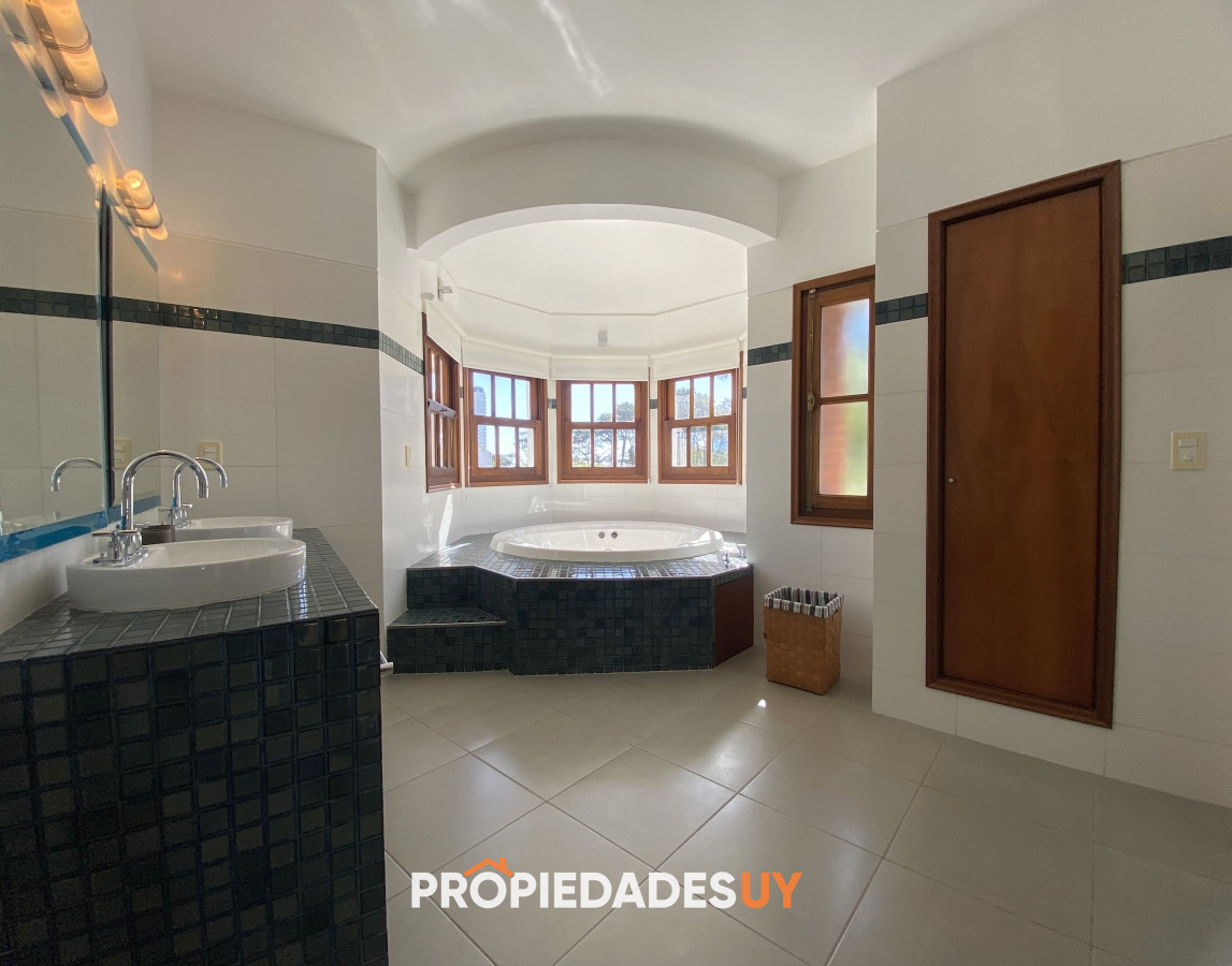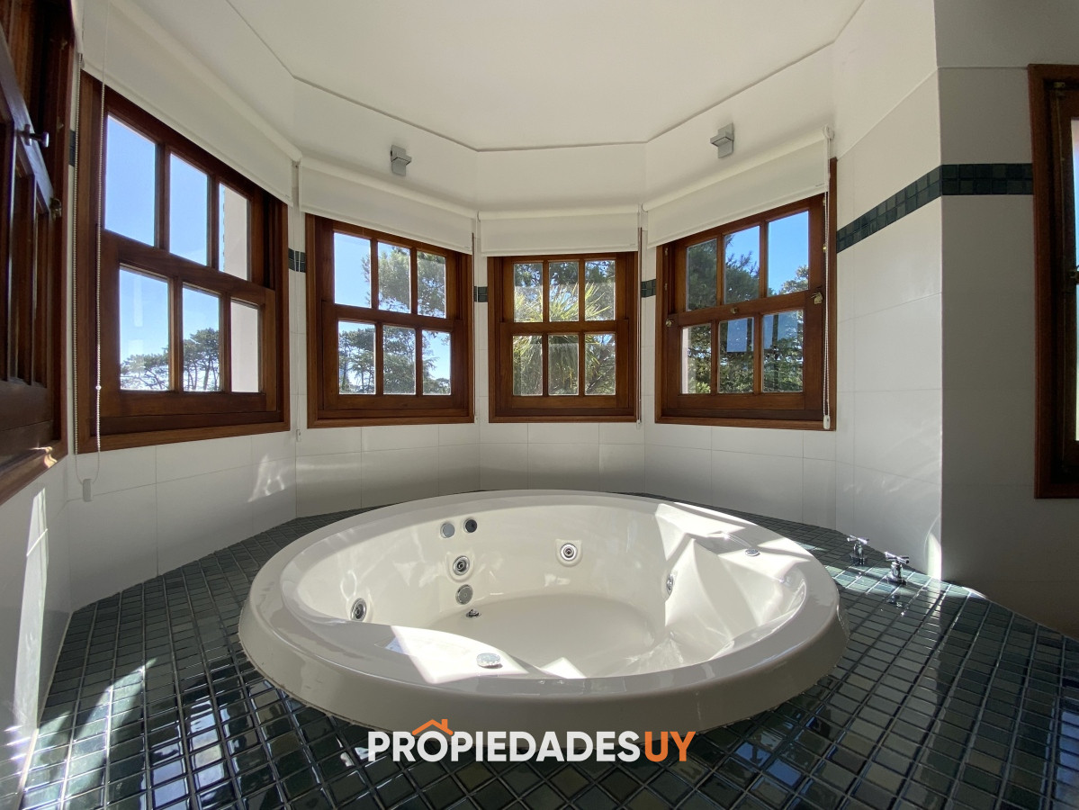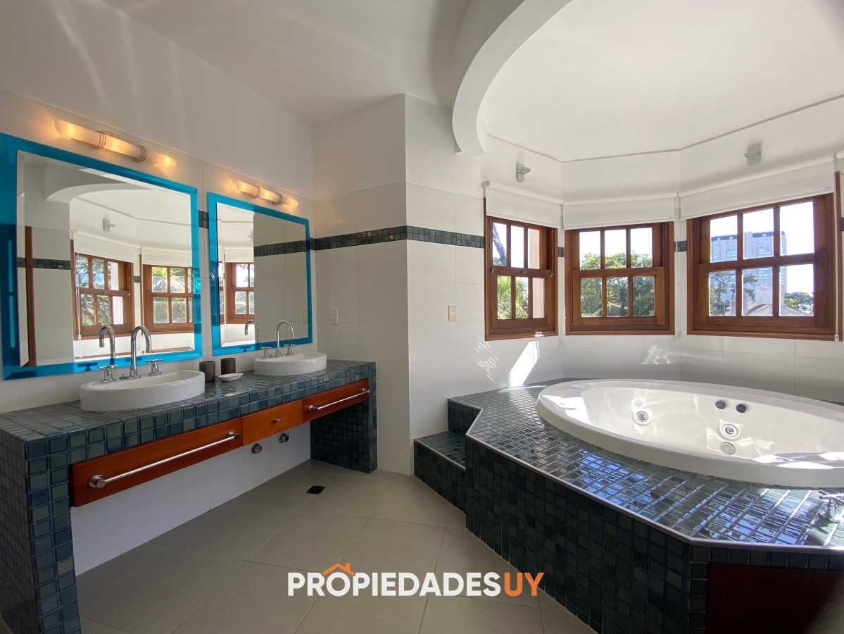 A pocas cuadras del mar se encuentra esta residencia de gran apariencia. Desarrollada en dos plantas + subsuelo (gge) y con una muy buena distribución, en una excelente ubicación en parada 15 de playa mansa. Amplio jardín cercado con piscina climatizada, garaje para 3 autos, aires acondicionados en todos los ambientes y losa radiante en toda la casa. Su espaciosos ambientes cuentan con una barbacoa integrada , 5 dormitorios (3 en suite), 4 baños, room office y dependenia de servicio con baño. A su vez cuenta con amplios espacios de circulación, 2 living con estufas a leña y gran cocina definida con doble circulación.