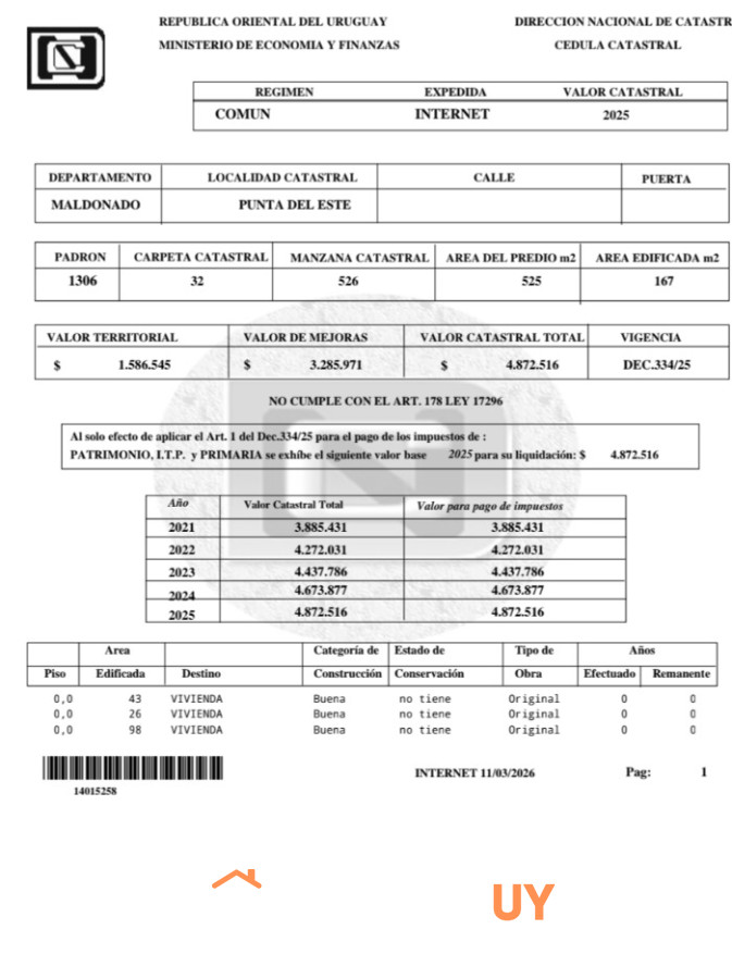 Sup.Terreno m2 : 525